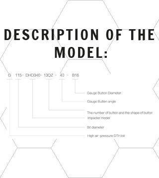 Number Model mm in Gauge button Mid button Front button Gauge tooth angle NO.Flushing holes(PCS) Weight (KG)