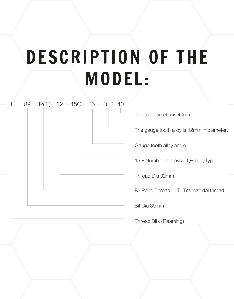 Number Model Bit Dia.(mm) Thread Gauge Front Gauge tooth angle Side Front Weight (KG)